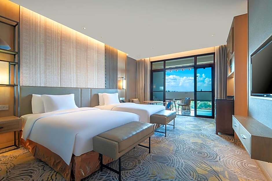 1 King 1 Bunk Premium Kids Theme is 65 square feet and includes either bunk beds or a king-size bed 150-183 width plus extra beds on demand, hairdryer, safe, and bathrobes.